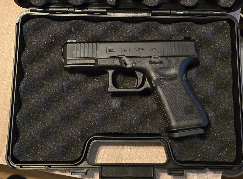 Hallo, biete hier eine Glock 19 gen.5, 6mmBB, gas an, in schwarz. Die waffe hat Blowback, hat keine gebrauchspuren, waffe ist aus Metall mit Polymer body, sie ist dicht und hat ein F zeichen. Mit dabei ein Waffenkoffer. Was aussieht wie Flecken auf der waffe sind nur Öl Spuren von der Pflege. Waffe ist nur probe geschossen, zwecks funktion und Dichtigkeit.