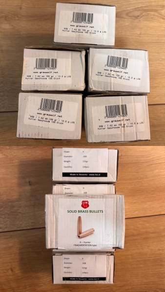 Ich biete hier 5x Pakete mit je 100 Geschossen des Typs LOS Hunter .30 155grs.