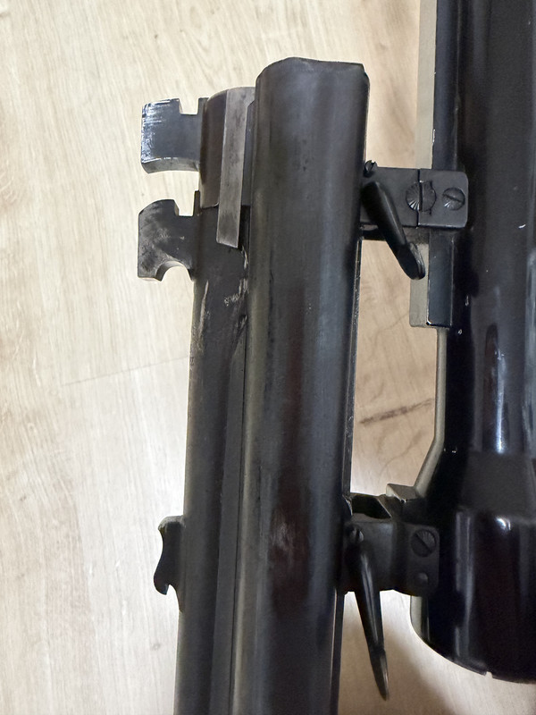Kein Verschlusspiel (ohne Vorderschaft getestet), dem Alter entsprechende Abnutzung und Schäden: Laufbrünierung stellenweise abgegriffen / beschädigt, Schaftholz hat Lager und Gebrauchsspuren, Systemkasten hat etwas Höhenspiel im Schaft (Kolbenhals rechts steht etwas ab?), eine Schraube der nachträglich angebrachten Gummischaftkappe ragt ins Schaftmagazin, Abzugsbügel sieht abgenutzt aus.
