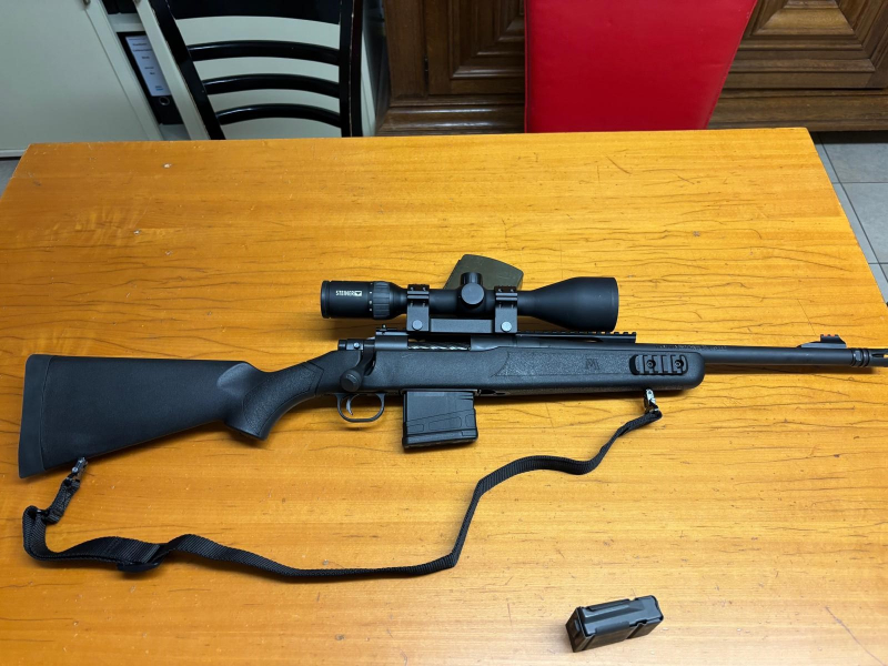 verkaufe meine Mossberg MVP Scout. Es ist ein Repetierer im cal. 308 Winchester bzw. 7,62x51mm Nato. Die Waffe hat ca. 80 Schuss durch. War mehr im Schießstand als im Revier. Wurde nach Corona nicht mehr genutzt und steht seit dem gut geölt im Waffenschrank rum. Sie soll nun weg. Die Waffe hat einen matchartigen Kammerstengel und läßt sich damit sehr schnell repetieren.