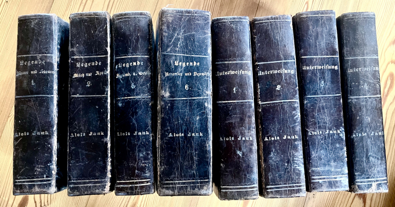 Konvolut antiker Religionsbücher un 1860, Unterweisung in der Christkatholischen Religion, Leben Gottes usw..