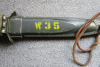 Biete hier dieses originale US M3 Trench Knife Kampfmesser aus dem Jahre 1943 an, komplett mit der dazugehörigen M8A1 Scheide, diese mit dem Hersteller: PWH, der Messergriff besteht auch gepressten Lederringen, die Scheide zusätzlich mit der schablonierten Aufschrift „W 3 5“, sowie unten mit einer viereckigen Lederschnur zur Beinbefestigung. Die Klinge in perfekter Erhaltung, und schön gestempelt mit der Bezeichnung „US M3 1943“, Klingenlänge ca. 17cm, Gesamtlänge ca. 32cm. Insgesamt sehr guter Originalzustand, siehe auch die Fotos dazu. Fragen hierzu gerne per email, allen Bietern viel Erfolg. Auslandsversand nach vorheriger Anfrage möglich.
