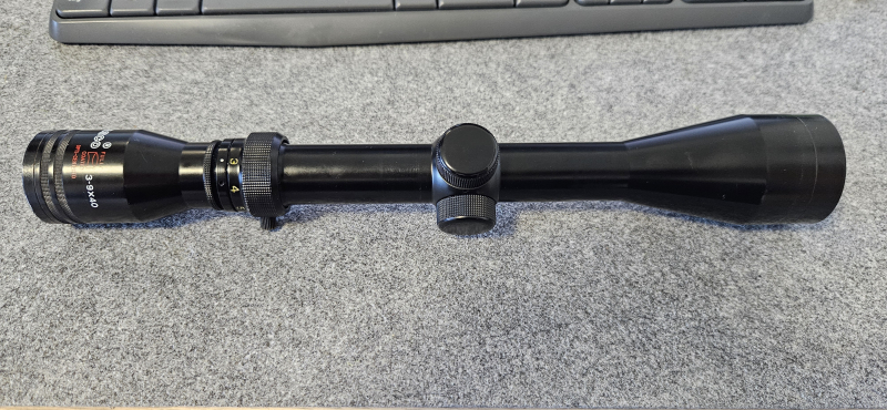 Vintage Zielfernrohr Tasco 3-9x40 aus den frühen 70ern Made in Japan. Funktion einwandfrei, Linsen klar und ohne Schäden, teils Montagespuren am 1" großen Rohrkörper. Absehen 1