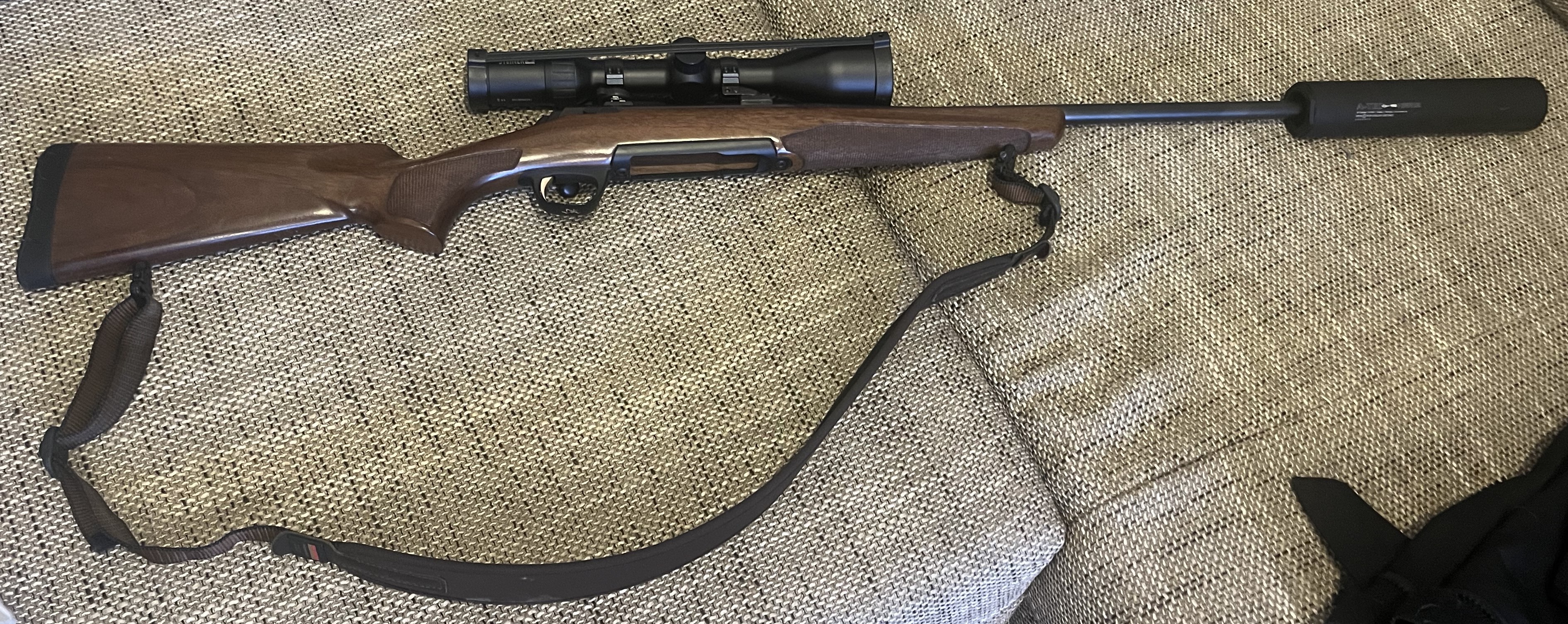 Repetierbüchse im Kaliber 30-06, bisherige Schussleistung < 100 Schuss. Waffe wurde nur jagdlich geführt und hat minimale Gebrauchsspuren. Waffe wird nur als Paket verkauft, d.h. inkl. ZF und Schalldämpfer.