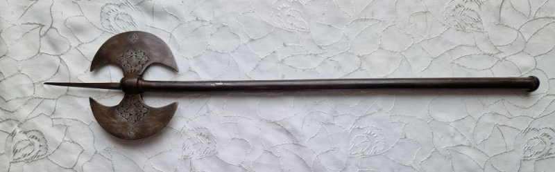Antike Doppelaxt geätzt, Einlagen usw.