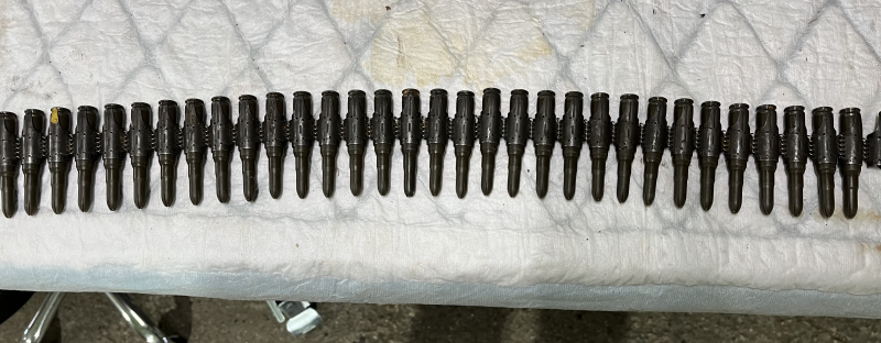 Biete einen , 50 Schuss Patronengurt für MG 3 oder MG 42 , Gurt gefüllt mit Platzpatronen grün , 7,62x51 , 32 Stück , Alter Lagerbestand der BW , siehe Fotos , Verkauf nur kpl. und da Privatverkauf keine Garantie oder Rücknahme , kostenloser Versand