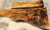 Die ersten Aufnahmen entstanden auf einem leicht angefeuchteten Holzbrett, um die Farben und die Schönheit des fertigen Produkts realistischer darzustellen. Das letzte Bild zeigt die Maße in Zentimetern. Die Konturen wurden auf die tatsächlichen Abmessungen der Blaser F3 übertragen. Die Teile wurden fünf Jahre lang luftgetrocknet. Auf Dampftrocknung wurde verzichtet, um die Farben und die natürlichen Harze des Holzes zu erhalten. Das Ergebnis ist ein elastischerer, festerer und schönerer Schaft.