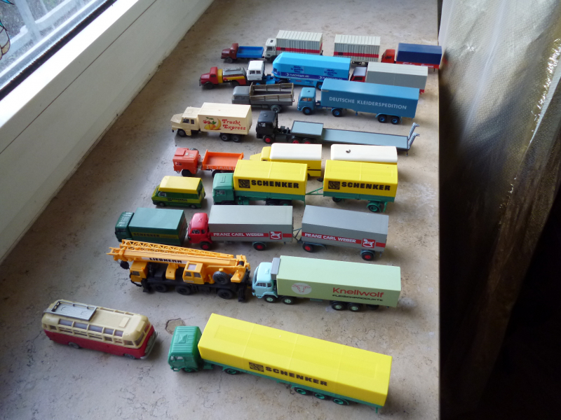 Aus grossem Nachlass-20 stk. -Maßstab ca H0--verschiedene LKW teils mit Werbeaufdruck --s Foto-- leichte schäden durch den transport nicht ausgeschlossen -- etwas angestaubt mal saubermachen----demnächst noch mehr--die genauen Typen entnehme man dem Foto--auktion umfasst nur die Modelle --