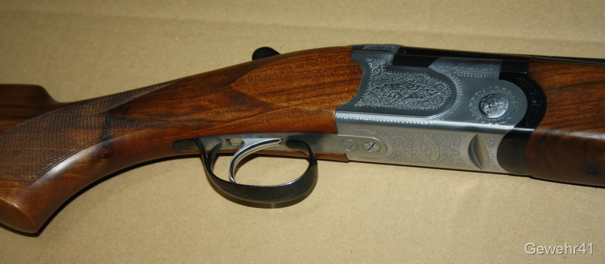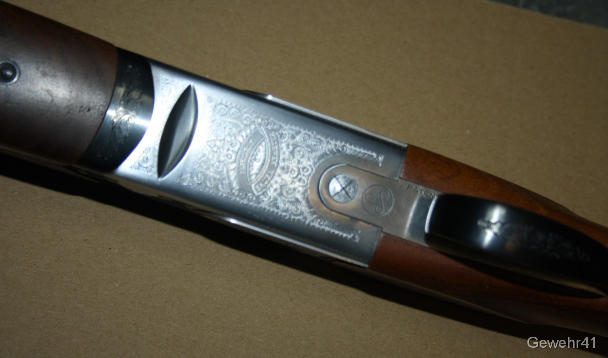 Sie bieten auf diese Bockdoppelflinte aus dem Hause Sauer/Beretta im Kal. 12/70. Die Flinte ist im wirklich neuwertigen, gepflegten Zustand und wurde sichtlich nicht viel geschossen. Läufe und Funktion einwandfrei. Gesamtlänge 71cm, Gesamtlänge 114cm, Schaftlänge 36cm.