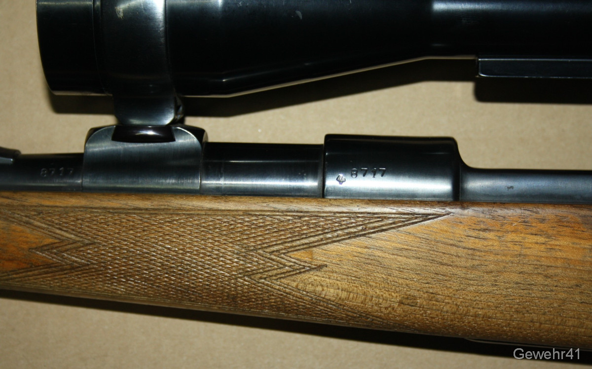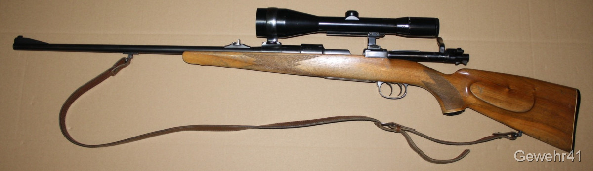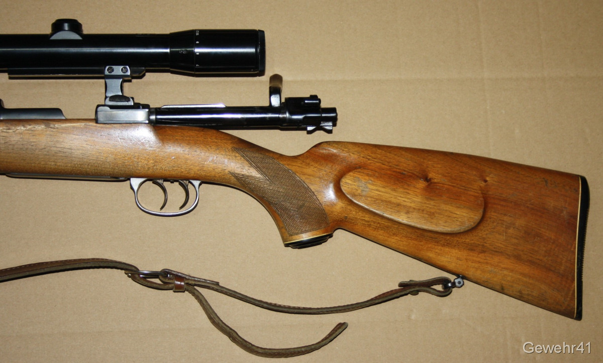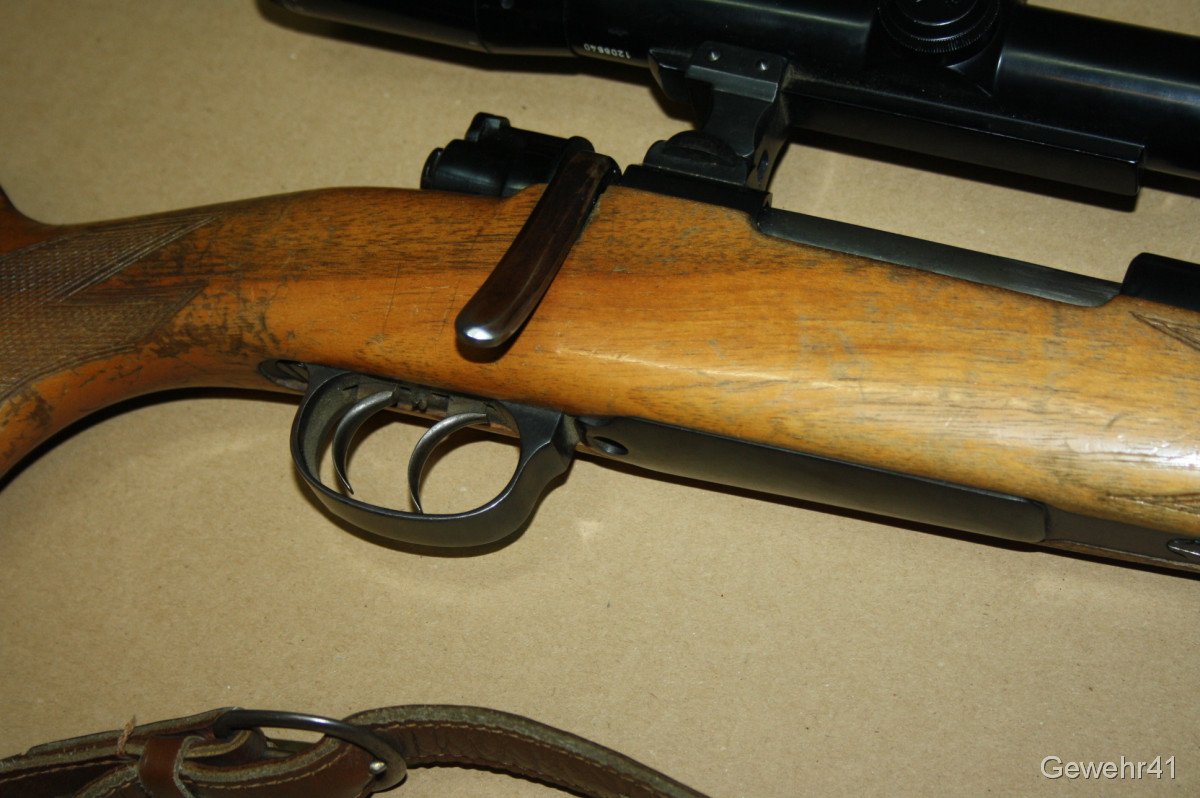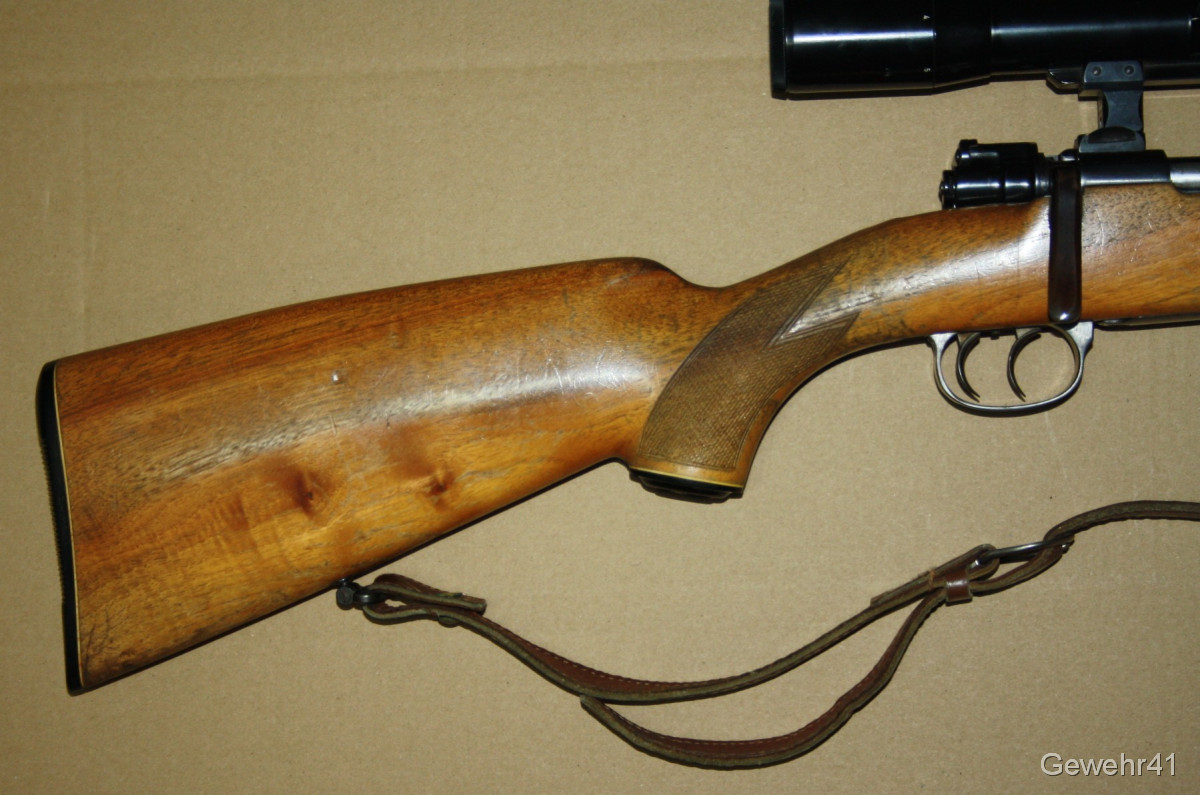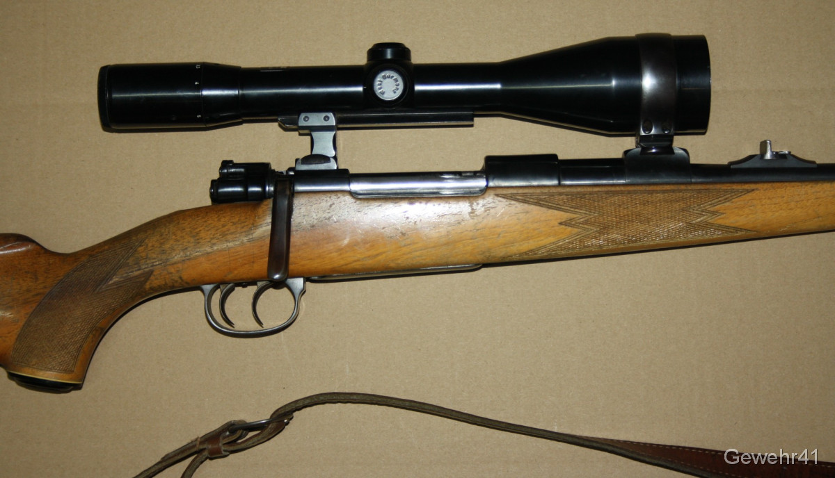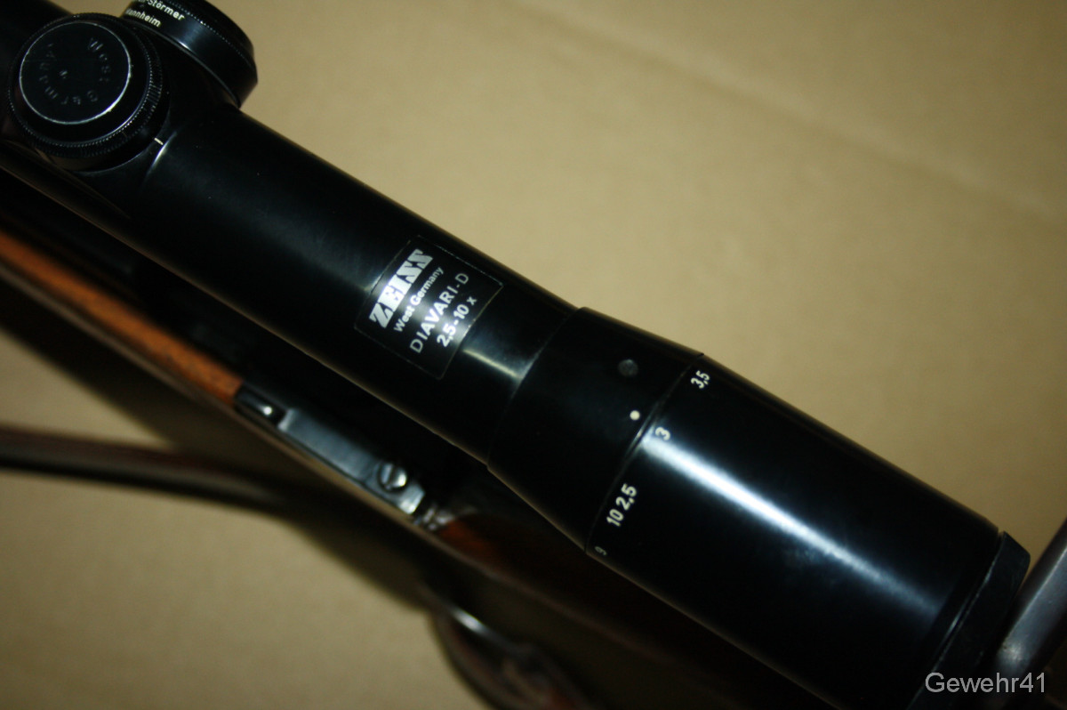 Sie bieten auf einen gebrauchten, einwandfreien 98er Mauser Jagd-Repetierer im Kal. 7x57. Montiert ist ein ZF Zeiss Diavari-D 2,5-10x mit Abs.1 auf Schwenkmontage. Er ist im guten Zustand. Lauf und Funktion einwandfrei. Lauflänge 58,5cm, Gesamtlänge 113cm, Schaftlänge 37cm.
