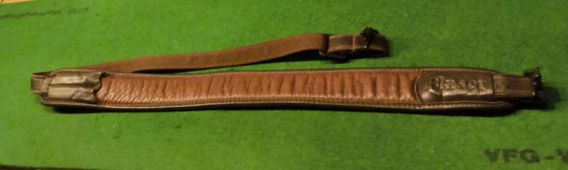 Angeboten wird ein Original Blaser Gewehrriemen, Leder, mit zwei Schnellverschlüssen