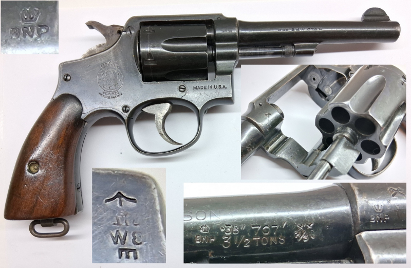 Angeboten ist ein gebrauchter Revolver Made in USA, Smith & Wesson – Mod. 10 Victory, 5 Zoll, Kaliber .38Spec. BNP 38'' 707' 3 1/2 tons.