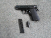 Erma EGP 45, Kaliber 8 mm Knall, gültiger Beschuß, PTB 398, 8 Schuß Magazinkapazität, Gewicht 600 g, Länge 160 mm, Höhe 110 mm, Breite 28 mm, mit Abschußbecher, keine wesentlichen Gebrauchsspuren, in nahezu neuwertiger Erhaltung.