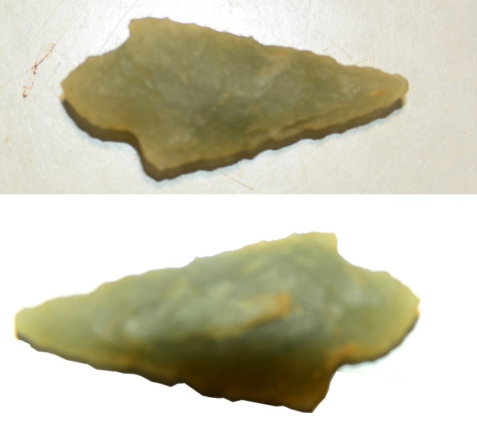 Kleine Pfeilspitze aus Feuerstein, wahrscheinlich aus Afrika, 34mm lang und an der breitesten Stelle 15mm, sehr guter Zustand