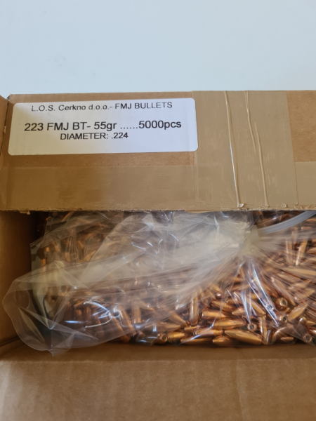 angeboten werden 1000 Stück Los Geschosse .224 Dia (223 Rem) FMJ-BT 55gr, Vollmantel, wird aus Bulk entnommen, alles ein Los