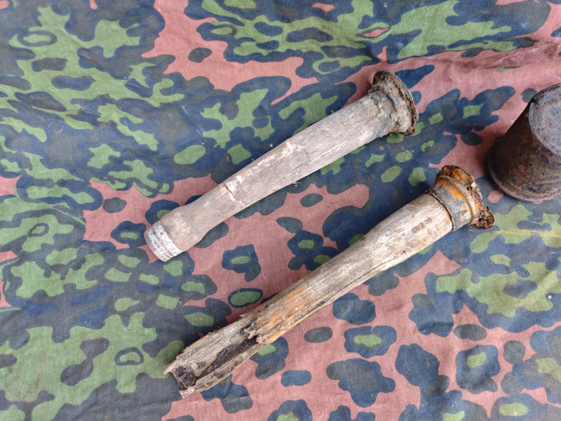 Originale Teile einer deutschen M24 Stielhandgranate aus dem Zweiten Weltkrieg.