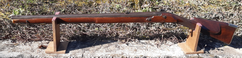 Zum Verkauf steht ein altes von mir unbekanntes schweres Percussionsgewsehr! Keine Bestempelung, keine Aufschrift! Schöner Schaft , warscheinlich Nussbaum, kleiner Riss nah der Schaftkappe, schön geriffelter Griff! Schöner Lauf,mit Züge, kein Rost Kal. ca 18mm an der Mündung!Alle metalteile aus Messing, Putzstock inbegriffen. Gesammtlänge ca 113cm! Gute Mekanick, Hahn rastet schön in zwei Stellungen ein.