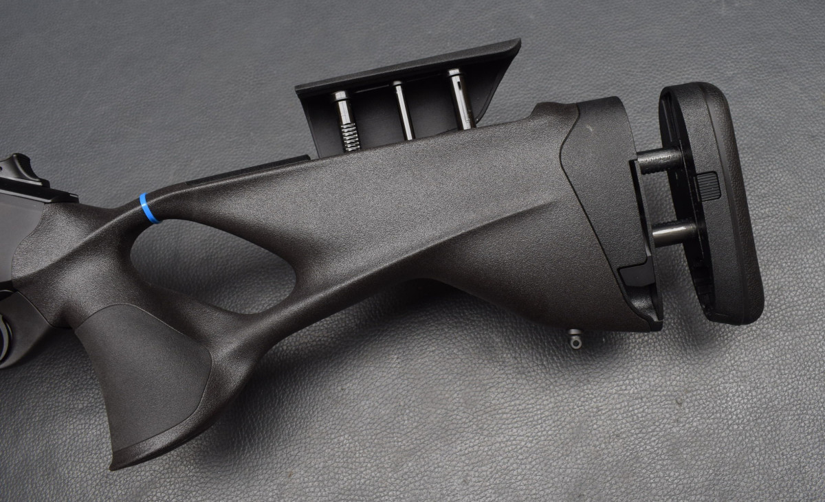 Dieses ermöglicht ein blitzschnelles Nachladen und schnelle Schussabgabe bei entspannter Körperhaltung.
