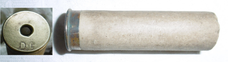 Angeboten wird 1 leere, ungebrauchte Collath-Schrothülse mit horizontaler Stiftzündung No.3, entspricht Kal.14 mit fester weißerPapphülse und Messingboden. erhaben gestempelt nur: ( D&C ). Vermutlich ein Sonderauftrag für Dreyse & Collenbusch. Diese Hülse lagerte auf dem offenen Dachboden der Büchsenmacherei ERDELT in Neustadt/Haardt (Weinstraße). 100 Jahre haben eine Menge Schmutz hinterlassen, der noch nicht ganz entfernt ist.