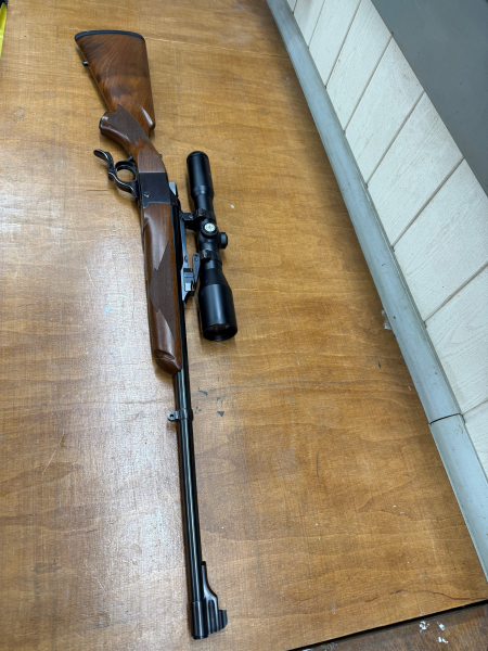 Verkaufe aus dem Nachlass eines Schützenkollegen eine Einzellader-Blockbüchse von Ruger, im Kaliber .243 WIN, mit Zielfernrohr 6x42, Made in Germany, Hersteller unbekannt. Funktion der Waffe ist einwandfrei, Züge und Felder sind glatt und scharf. Die Waffe ist in einem altersgerechten, guten Zustand. Da Privatverkauf dennoch keine Gewährleistung, oder Rücknahme.