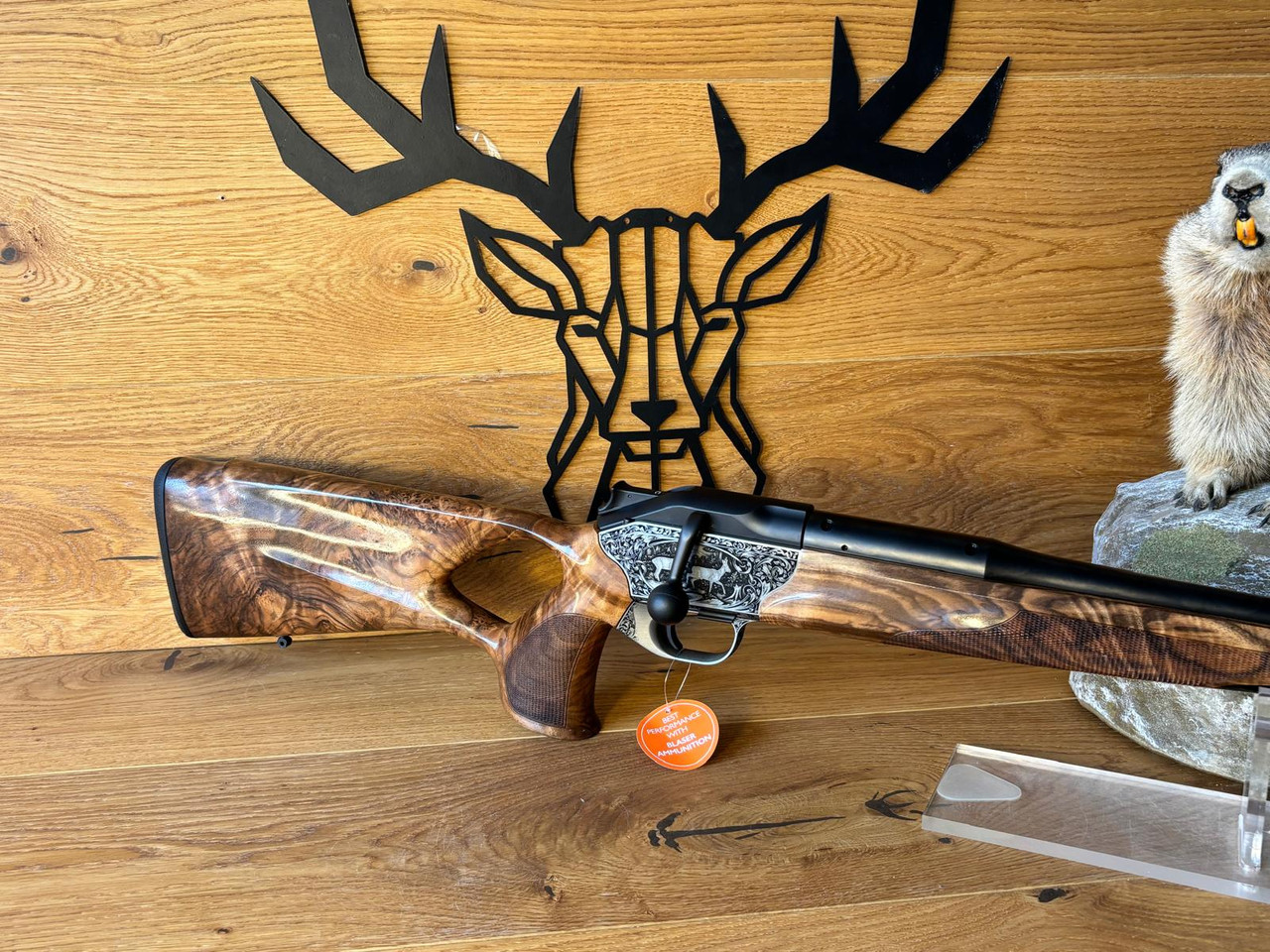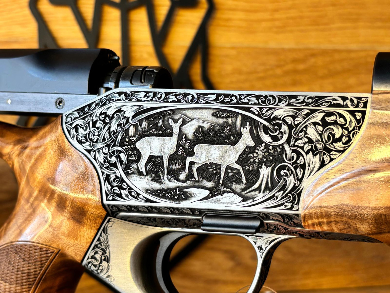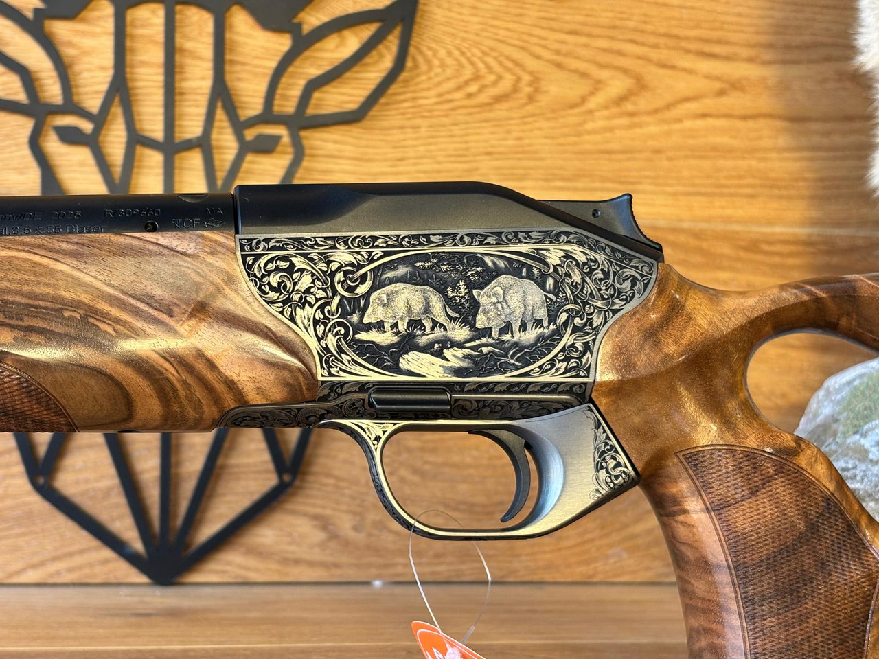 Wo edles Nussbaumholz und üppige Gravurkunst miteinander verschmelzen, entsteht etwas ganz Besonderes: Die R8 Success Grand Luxe bietet alle Vorzüge einer zeitgemäßen Repetierbüchse mit ergonomisch perfektem Lochschaft und besticht durch ihre elegante Erscheinung im traditionellen Stil. Die aufwändige Füllung aus altdeutschen Arabesken verleiht den Tierstücken einen klassisch anmutenden Rahmen. Der hochwertige Schaft aus Nussbaumholz der Klasse 6 wird durch den dunklen Ebenholzabschluss abgerundet. Die R8 Success Grand Luxe ist die stilvolle Wahl für Jäger, die eine hochwertige und elegante Jagdbüchse mit den Vorzügen der Lochschäftung suchen.