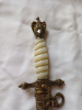 Marinedolch Damastklinge mit Sonderscheide und beidseitiger Klingen Ätzung.Messing Scheide Hersteller W.K.C.Bitte schauen Sie sich die Fotos an, welche Bestandteil dieser Auktion sind. Wenn Sie noch weitere Fragen haben, oder Sie möchten weitere Fotos, bitte kurz schreiben. Ob dieser Dolch ein Original ist, kann ich leider nicht beurteilen, aber er ist in einer TOP Qualität. Dies ist eine Privatauktion, daher keine Garantie, keine Rücknahme, kein Umtausch oder sonstige Nachverhandlungen. Die Versandkosten beziehen sich nur für Deutschland (ohne Inseln). Versandkosten in das EU-Ausland bitte vorher zu erfragen. Versand erfolgt als versichertes DHL Paket. Ich wünsche viel Freude bei dieser Auktion.Verkauf erfolgt unter Einhaltung des Paragrafen 86a STGB