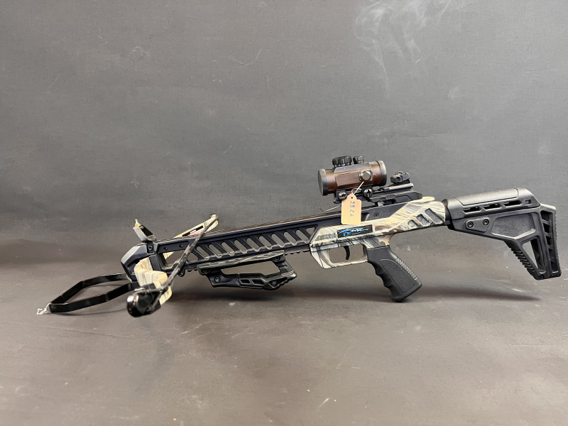 Sie bieten hier auf eine Jagdarmbrust von Man Kung der Fachmann weiß worum es geht. Mod. Hound XB27 175 Ibs inklusive Rotpunkt.Die Armbrust ist neu und unbenutzt.