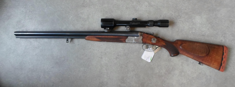 Drilling Krieghoff Kaliber 8 x 57 IRS und 16/70, gültiger deutscher Beschuß, alle drei Läufe blank, Zielfernrohr 6 x 42, Robert Geller, Giessen, Made in Germany, Absehen 1, Linsen klar, Gesamtlänge 102 cm, Schaft / Abzug 36 cm / 33,5 cm, Lauflänge 60 cm.