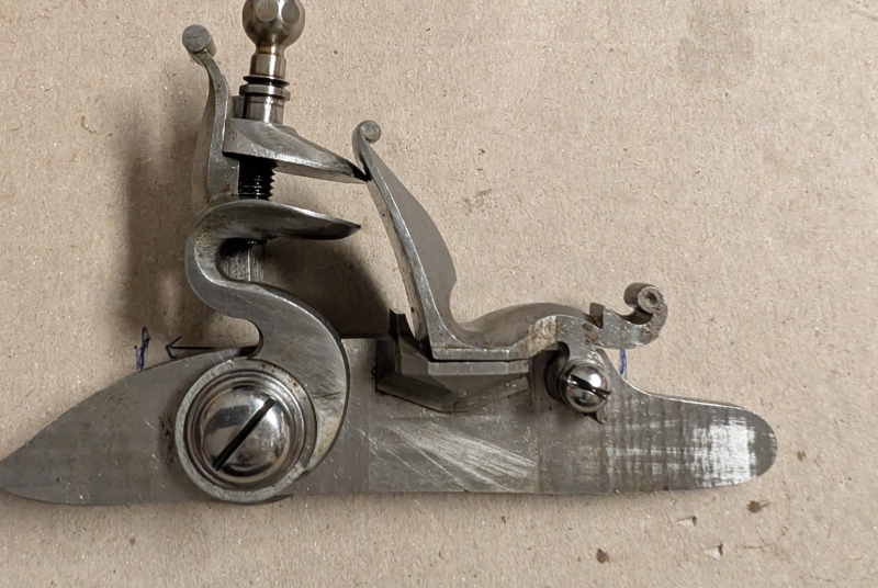 Verkauft werden Teile um ein Schloss für ein Steinschlossgewehr zu bauen oder als Ersatzteie. In meinen anderen Auktionen biete ich noch weite an, in verschiedenen Stadien der Vorbearbeitung. Die Länge der Schloßplatte beträgt ca 11,5 cm. Bei weiteren Fragen schreibt mich einfach an.