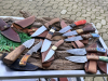 Hier erhalten Sie 10 stück sehr schönes Hand geschmiedetes Taschenmesser Jagd Messer in reizvollem Torsion Muster. Die ebenfalls handgefertigte Lederscheide besteht aus hochwertigem Rindleder und wurde dem Messer genau angepasst.