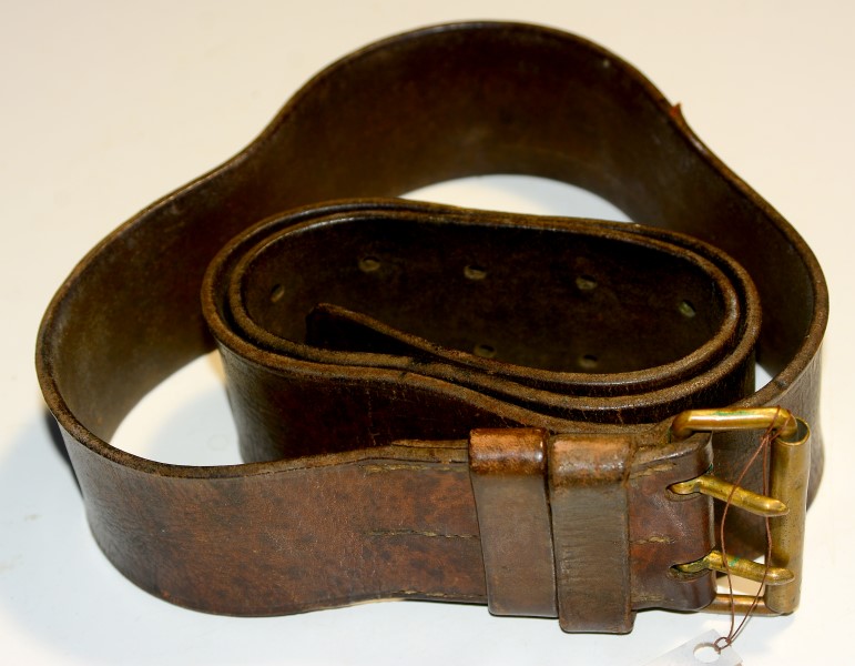 Französisches Militärkoppel 1. oder 2. Weltkrieg, mittelbraunes Leder, 5cm breit und 119 cm lang, gebrauchter Zustand aber ohne Mängel