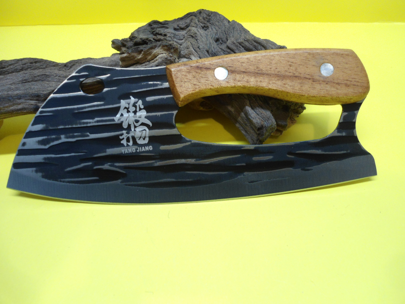 Kochmesser-Beil mit Griffschalen aus Holz
