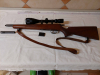 Repetierbüchse Anschütz Mod. 1517 im Kaliber .17 HMR. Lauflänge 34cm, Mündungsgewinde mit Mündungsfeuerdämpfer 46cm. Gesamtlänge mit MFD 92 cm. 5 Schuss Magazin, großer Kammerstengel-Knauf. Montiert ist mit Aufschubmontage ein ZF Simmons 4-12x56 Absehen 4. Leichte Gebrauchspuren. Die nachfolgenden Bilder sind Teil der Beschreibung.