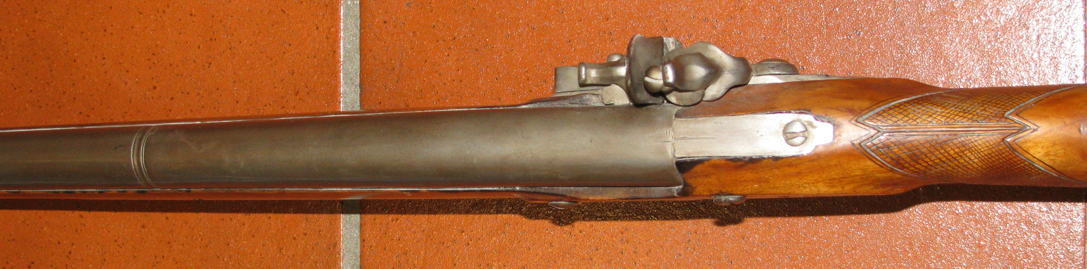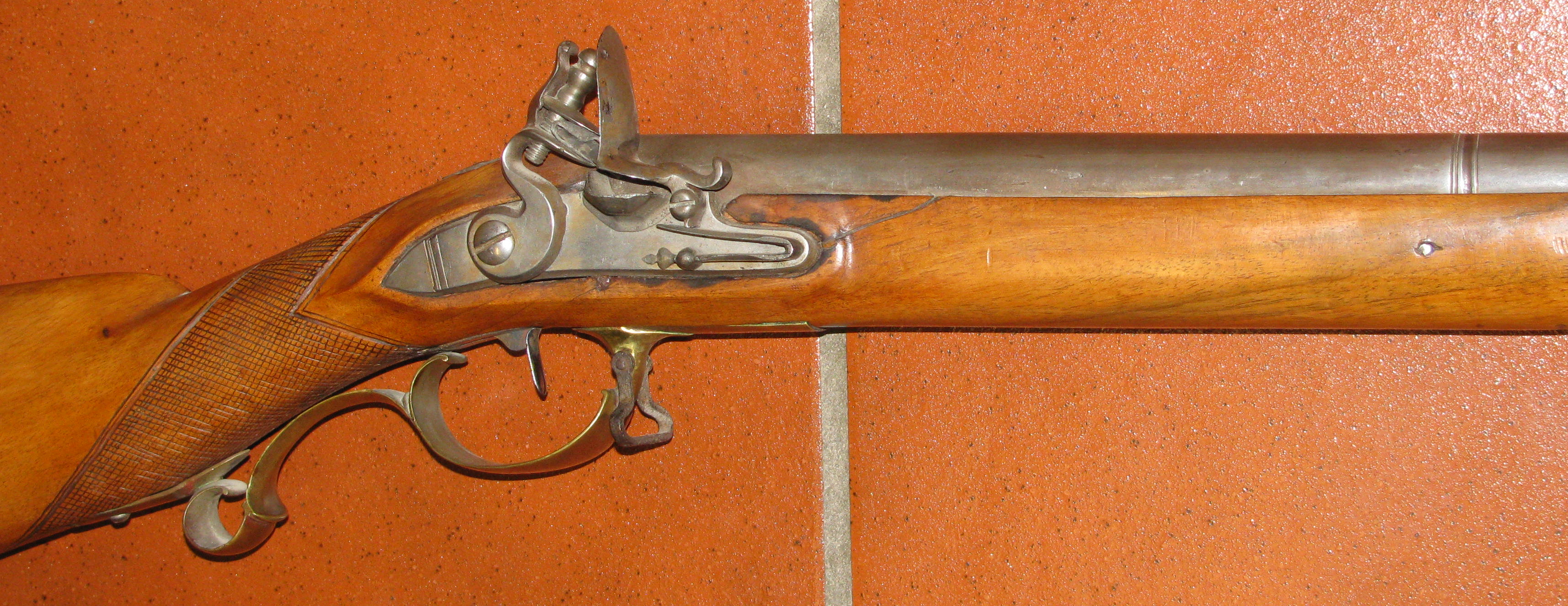 Zum Verkauf kommt eine Deutsche Steinschlossflinte um 1760 / 80 mit schönen Schloss und Beschlägen und einem Hornabschluss