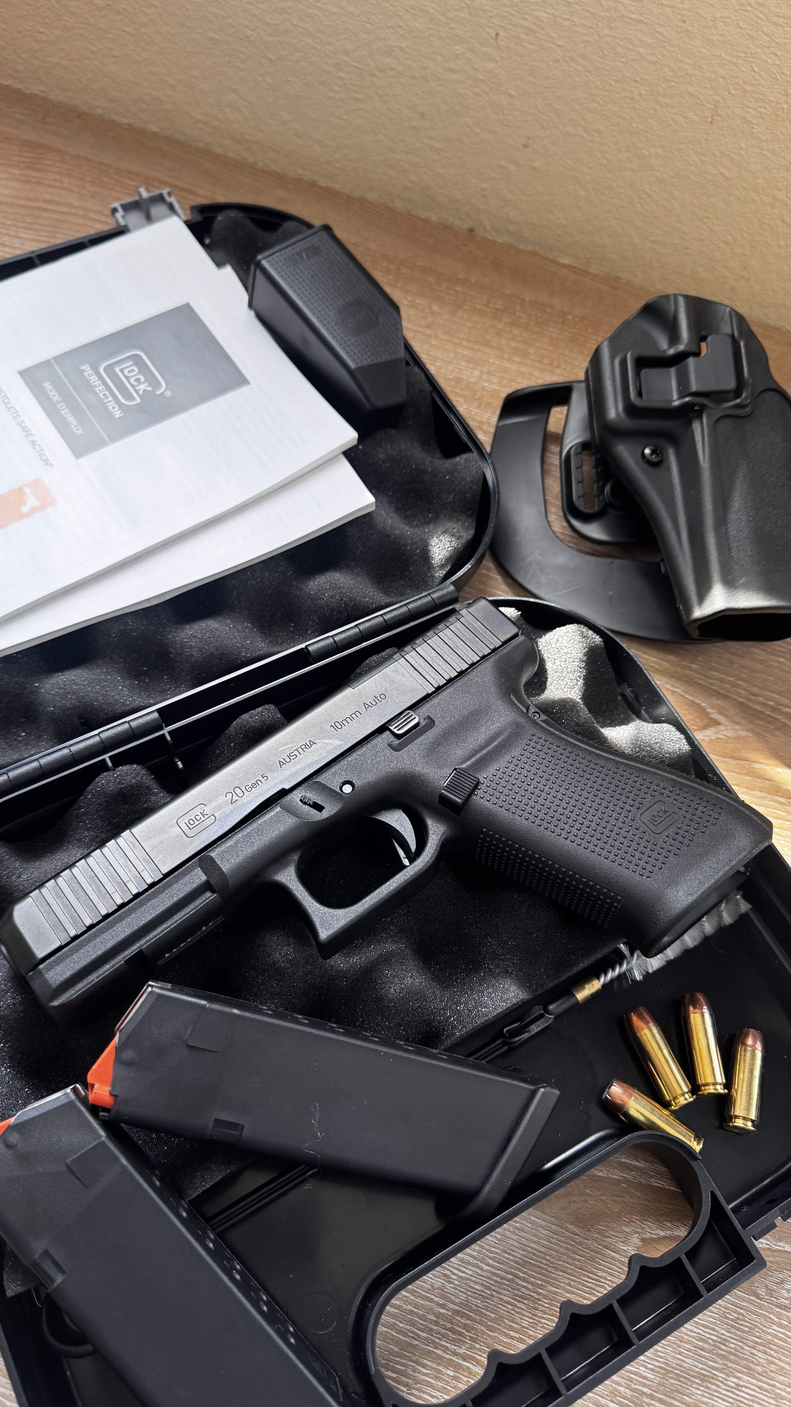 Zum Verkauf steht eine neuwertige Glock 20 Gen5 MOS im leistungsstarken Kaliber 10mm Auto. Es handelt sich um das aktuelle MOS-Modell (Modular Optic System) der Generation 5 und somit vorbereitet für die Montage eines Rotpunktvisiers.