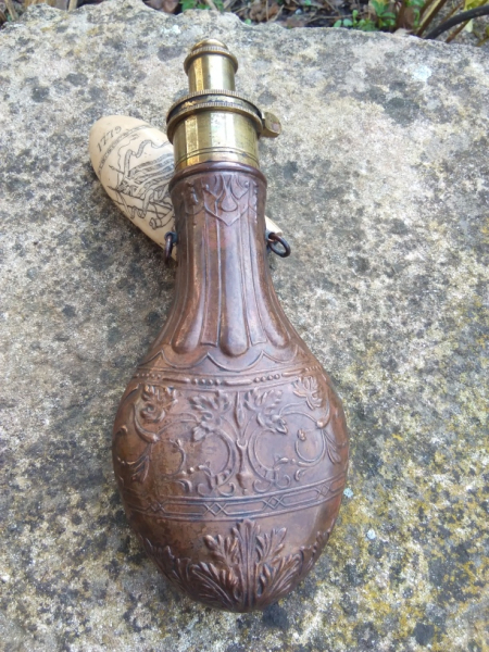 Verkaufe aus meiner Sammlung diese Pulverflasche von Hawksley, wie auf den Fotos zu sehen ist.