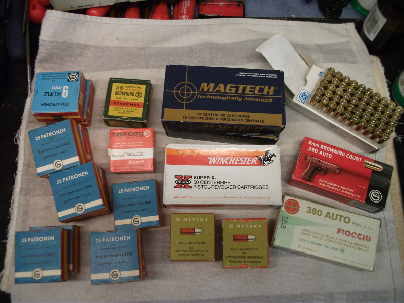 Sie bieten auf ein Sammler Konvolut im Kaliber 9mm kurz. Munition ist in guten Zustand. Immer trocken und warm gelagert. Sie bieten auf: 325 Schuß Geco VM, 40 Schuß Geco Bleirundkopf verkupfert, 40 Winchester VM, 50 Schuß PPU VM, 25 Schuß Hirtenberger VM, 25 Schuß Browning VM, 50 Schuß Fiocchi Plastiktrainingsmunition