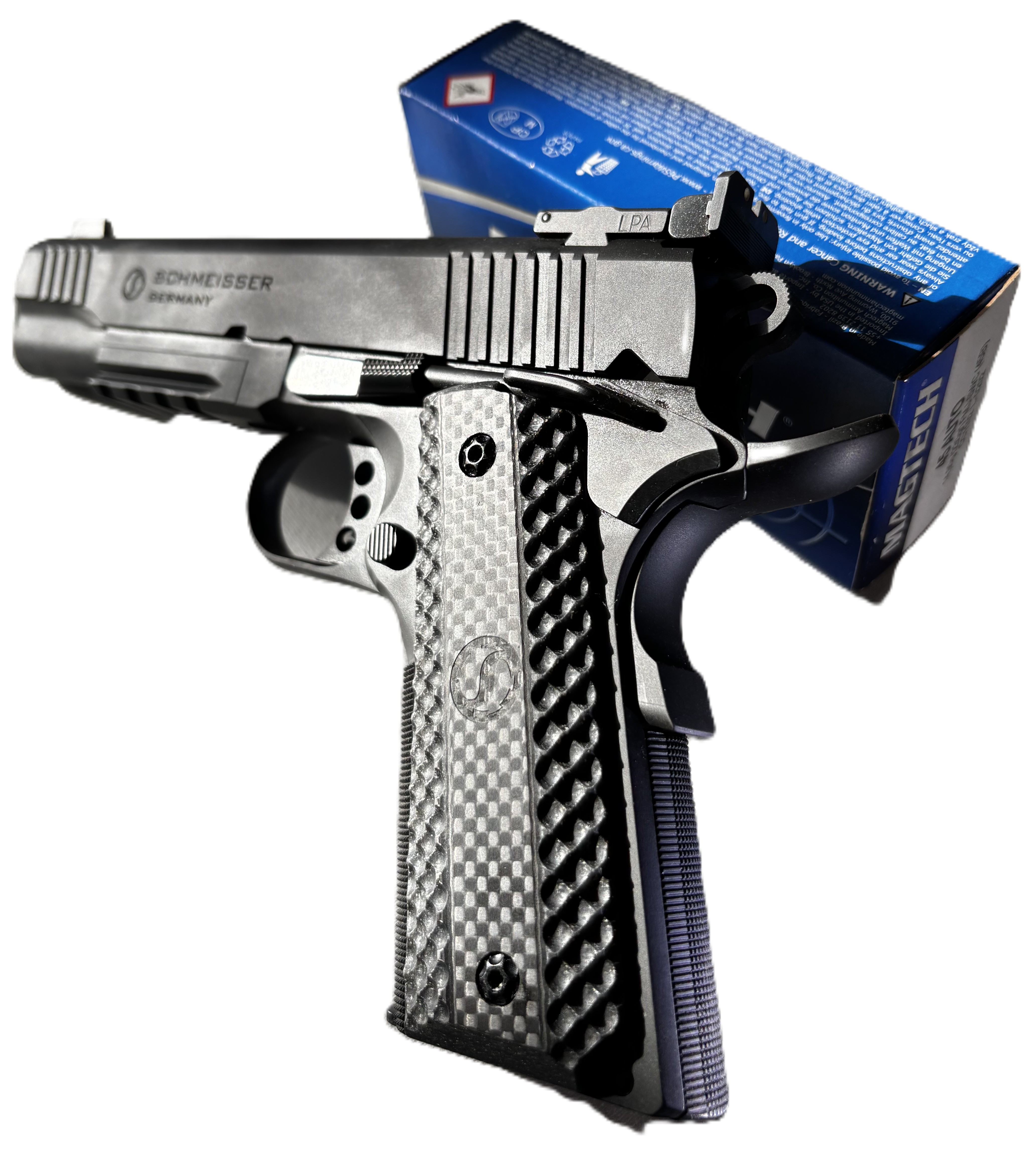 Geboten ist eine Top 1911, schwarz, Schmeisser Germany in .45Auto.Halbautomatische Pistole 5 Zoll.