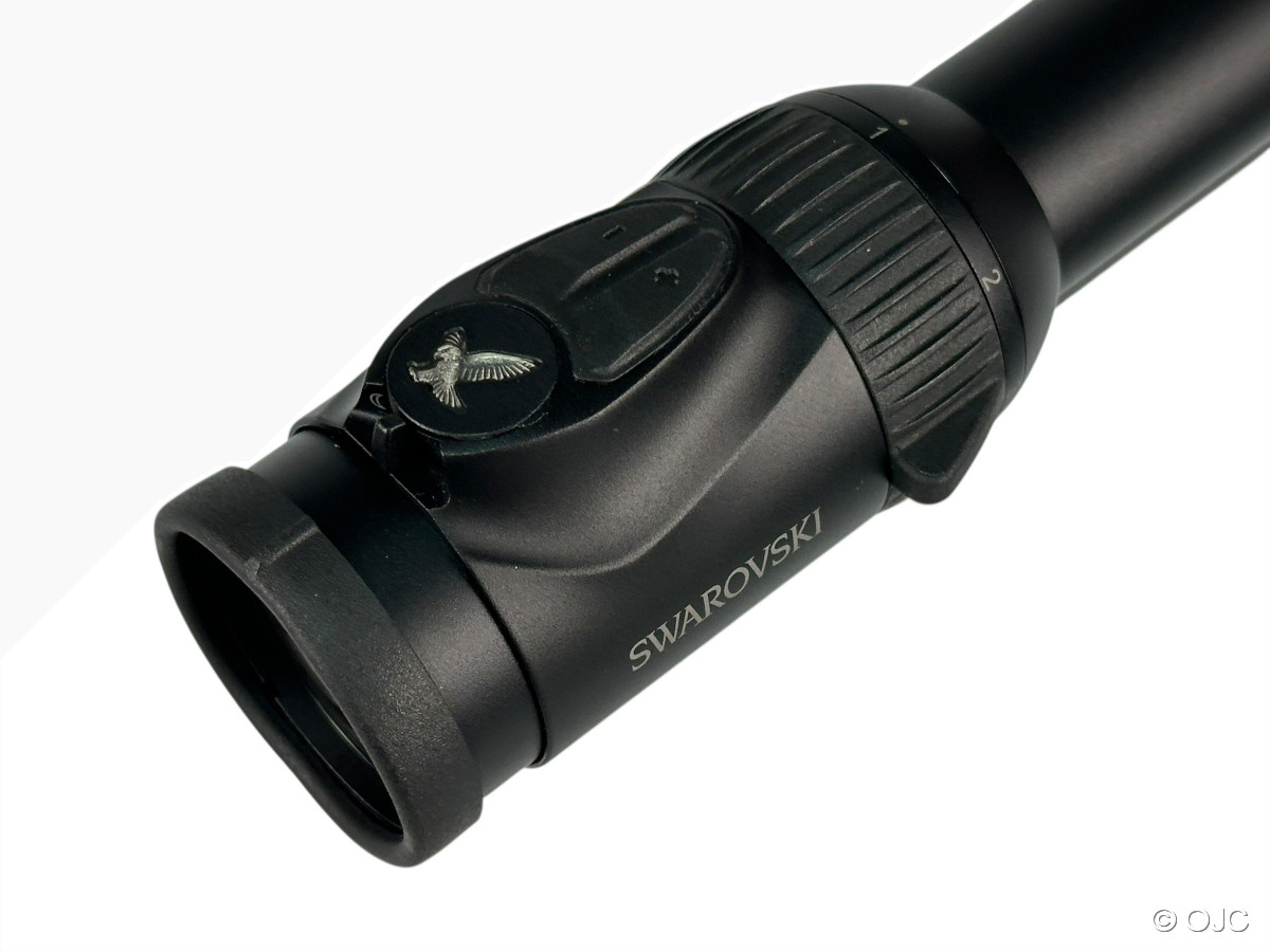 Ein Highlight ist das 4A-IF-Absehen mit der FLEXCHANGE-Technik: Während das gewohnte Absehen 4 (in zweiter Bildebene) immer sichtbar ist, kann man per Knopfdruck zwischen einem fein dimmbaren Leuchtpunkt und einem beleuchteten "Circle-Dot" (als Vorhaltehilfe für den schnellen Schuss) wechseln. Natürlich ist die Optik auch mit der SWAROLIGHT-Automatik ausgestattet, die dank eines Lagesensors die Batterie schont.