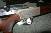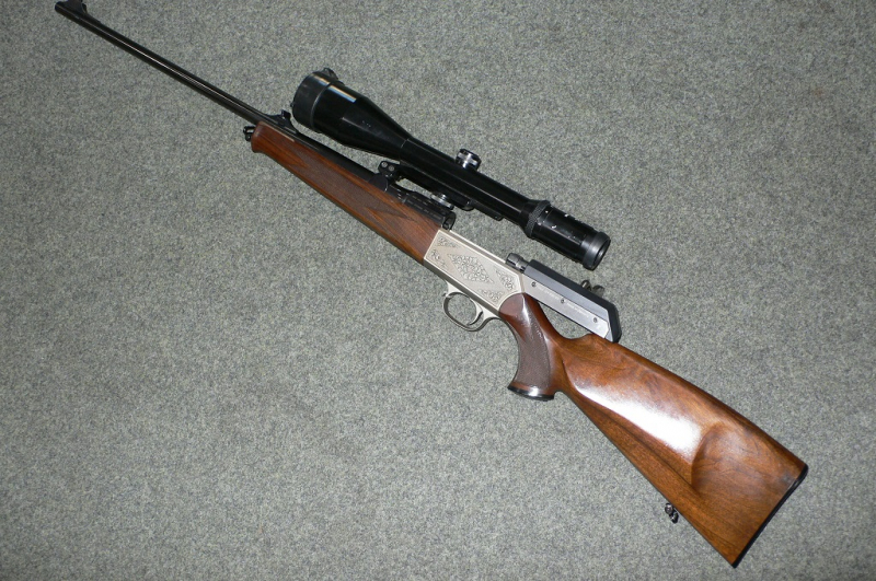 Blaser Repetierbüchse SR 850/88-Handspanner, im Kaliber .300 Win Mag., montiert mit Blaser-BSWM ist ein Swarovski Habicht Nova 3-12x56 Abs.1 ohne LA. Die Waffe ist sehr kurz gebaut, trotz des Kalibers, und sehr gepflegt. Die Waffe hat kaum Gebrauchsspuren. Die Waffe schießt sich sehr weich, da eine Mündungsbremse eingebaut ist, im Erodierverfahren.