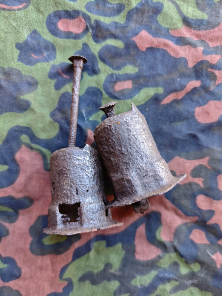Es handelt sich um zwei stark korrodierte Metallhülsen der Schulterstützenaufnahme mit Resten der Spann- bzw. Befestigungsschraube. Diese Bauteile waren in die hölzerne Schulterstütze eingesetzt und dienten zur Verbindung der Kolbenkappe bzw. des Spannmechanismus mit dem Gehäuse des MG-42.