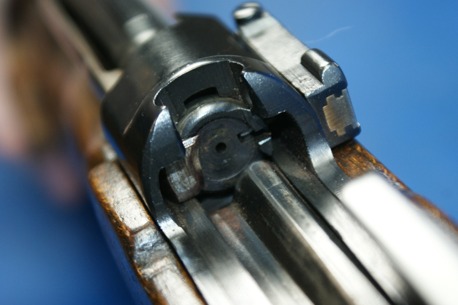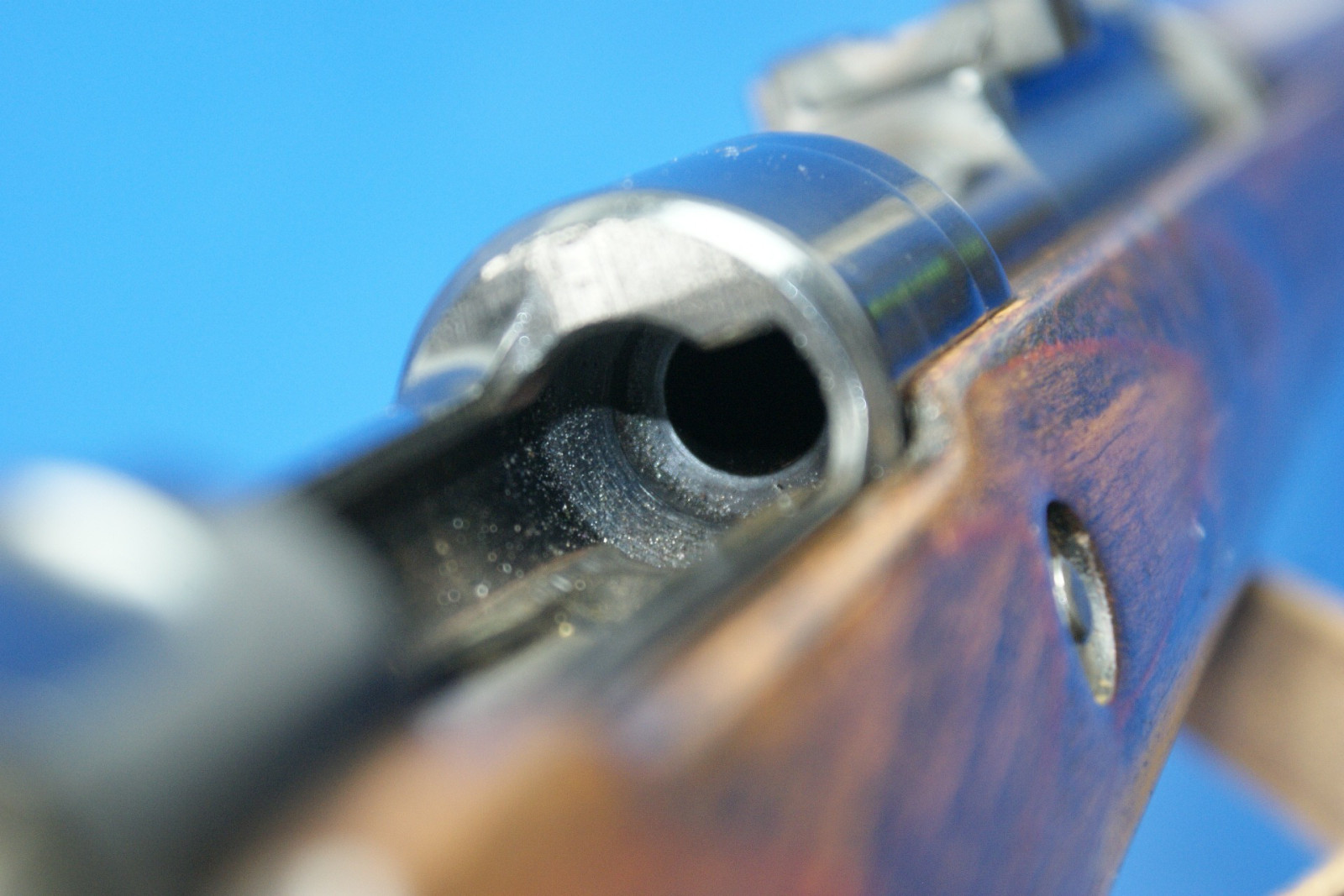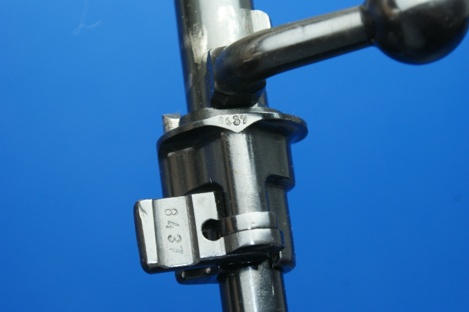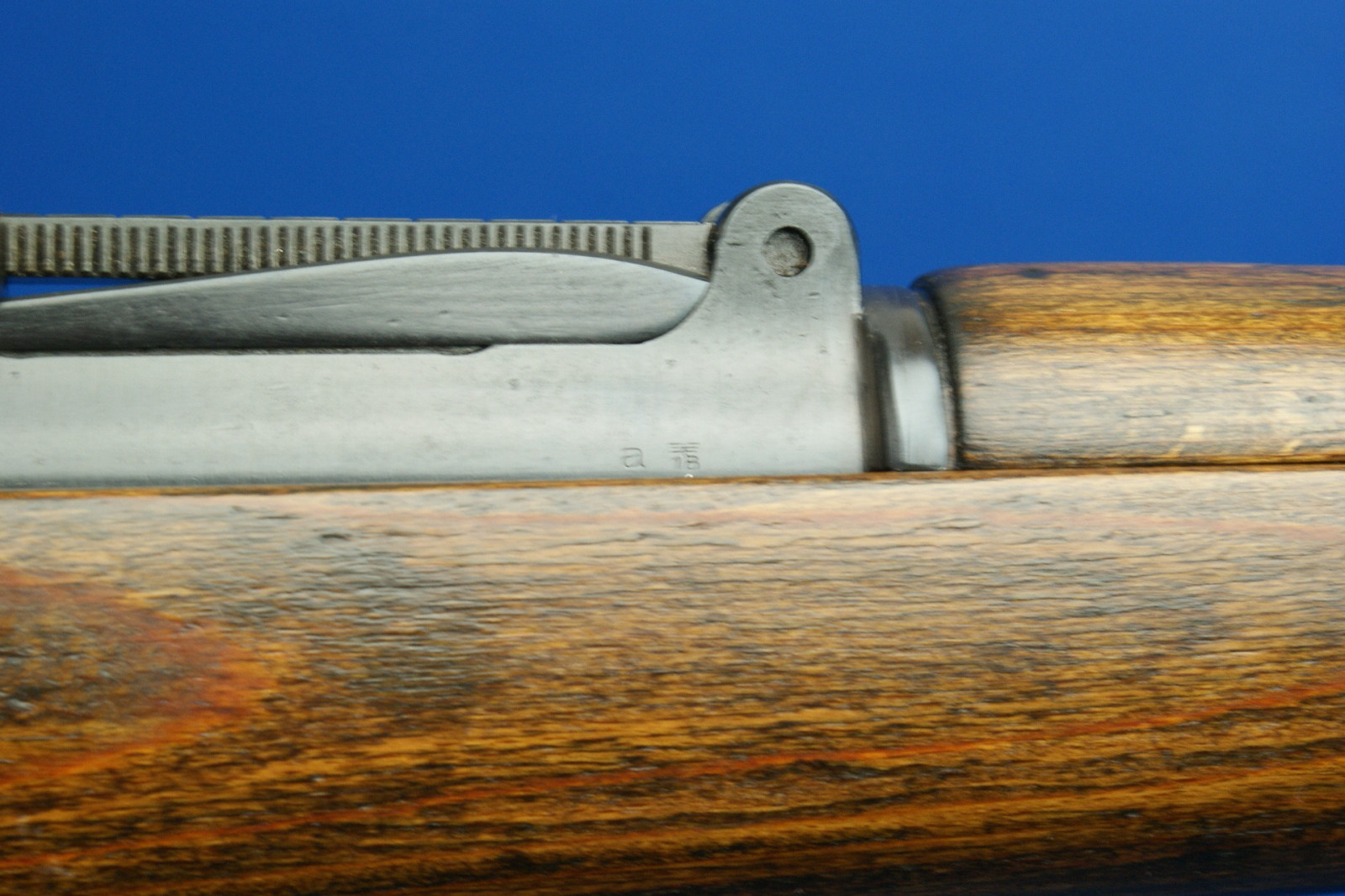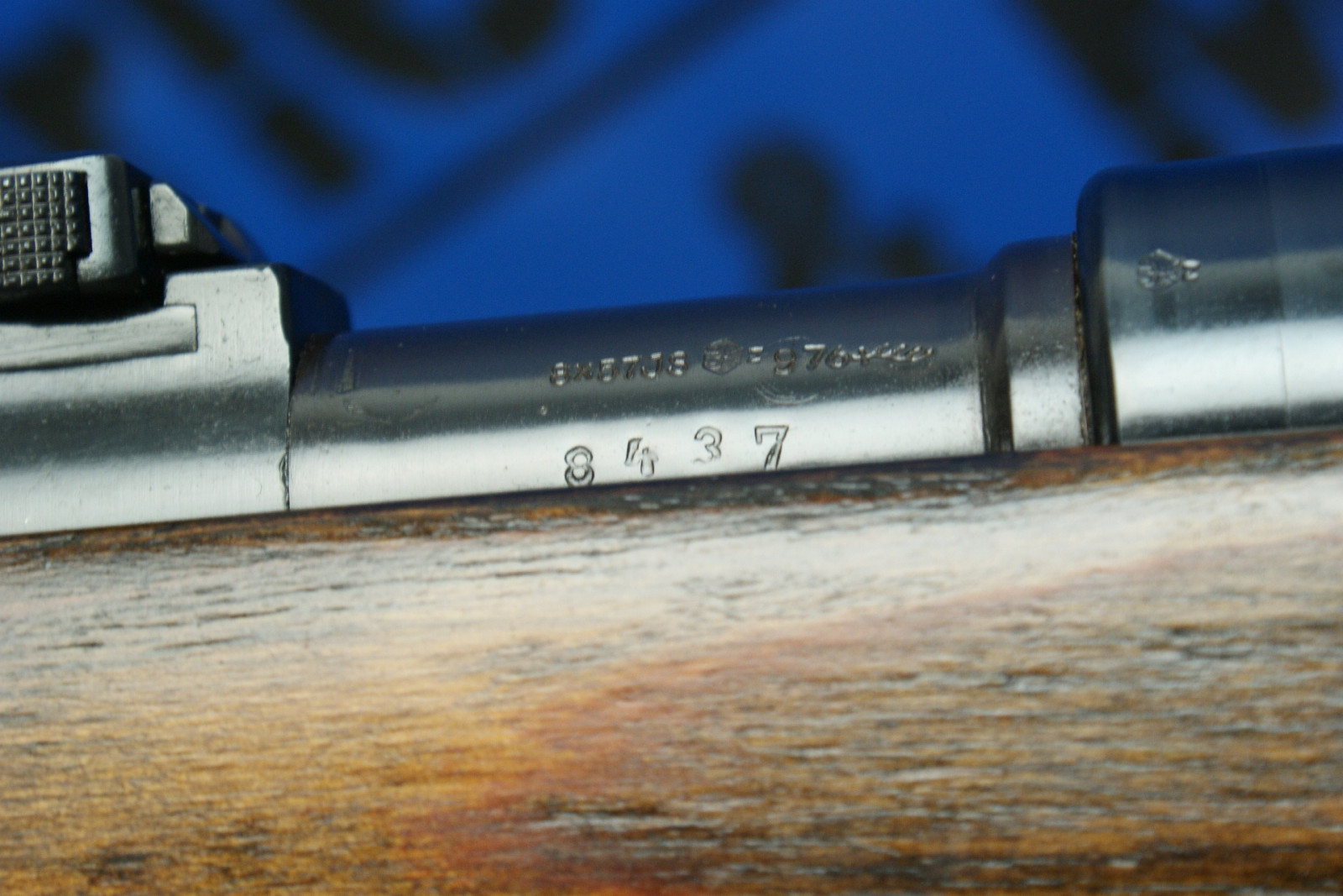 Lager- und Gebrauchsspuren. Magazindeckel und Abzugsgehäuse evtl. Korrekturgestempelt. Riemen ist eine Reproduktion. Waffe ist überarbeitet worden.