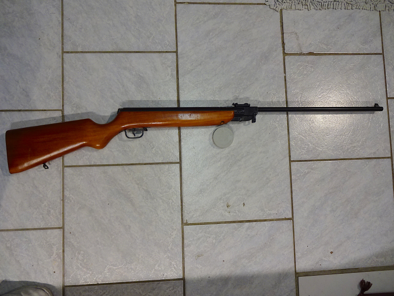 Kaliber 4,5 mm gezogener Lauf. Feine tiefschwarze Glanzbrünierung. Holzschaft mit Lagerspuren. Starker Druck. Dazu eine Schachtel Diabolos. Privatverkauf.
