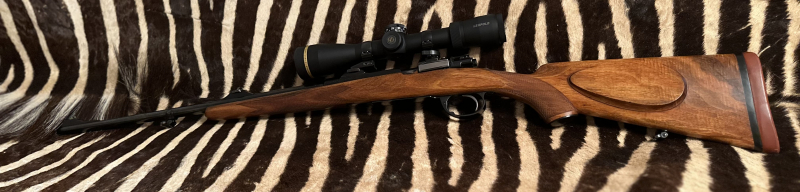 Zur Versteigerung steht ein Mauser 98, Kaliber 6,5x57, Lauflänge ca. 50cm, Hersteller Honold Ulm, lt. Büchsenmacher wurde die Büchse aus einem System K98a gefertigt, sehr schlank und führig, Dreistellungssicherung, mit Klappdeckelmagazin und griffigen Kammerstengel. Schaftkappe old Englisch Style, Zustand siehe Bilder, mit dabei Montageunter und -oberteile (Schwenkmontage) für ein 30mm Zielfernrohr - das Leupold VX-5HD 2-10x42 mit LP ist ausdrücklich KEIN Bestandteil der Auktion, kann aber bei Bedarf für 1500€ mit erworben werden. Verkauf nur an EWB, da Privatverkauf keine Garantie oder Rücknahme. Versand NUR innerhalb BRD mit entsprechenden Kurrier. Bei Fragen, bitte melden!