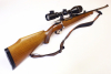• Nussholzschaft mit Monte Carlo Backe, gummierte Schaftkappe, schottischer Fischhautverschnitt am Griff & Vorderschaft, Tropfnase, Trageriemen