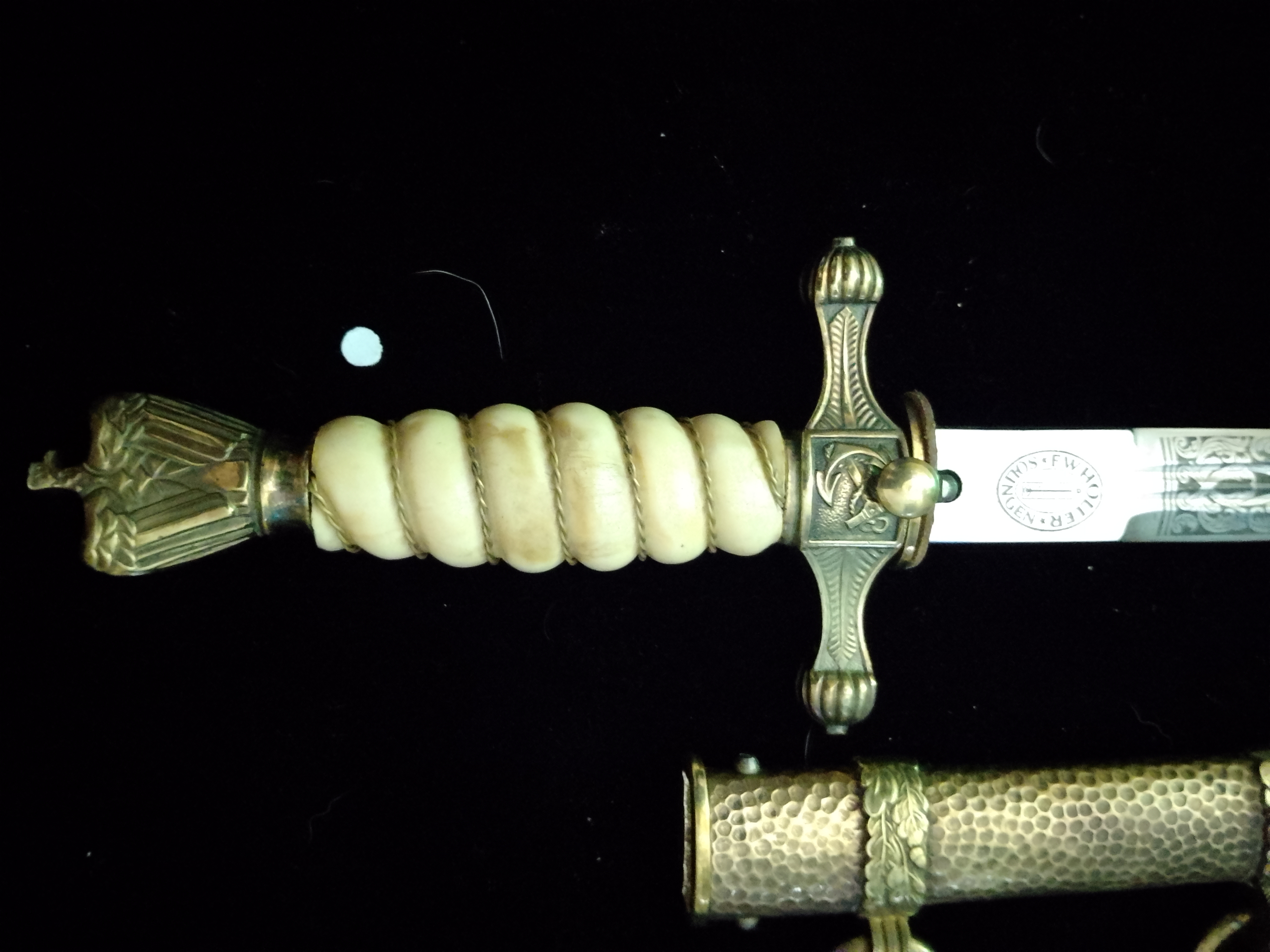 Marine Dolch der Firma Höller Solingen mit gehämmerter Scheide.