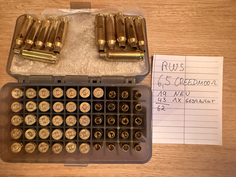 62 Hülsen RWS 6,5 Creedmoor wegen Kaliberabgabe zu verkaufen. Keine Rücknahme, Garantie, etc. Wurden einmal geschossen, meine sogar 19Stk wären neu... siehe auch andere Auktionen.