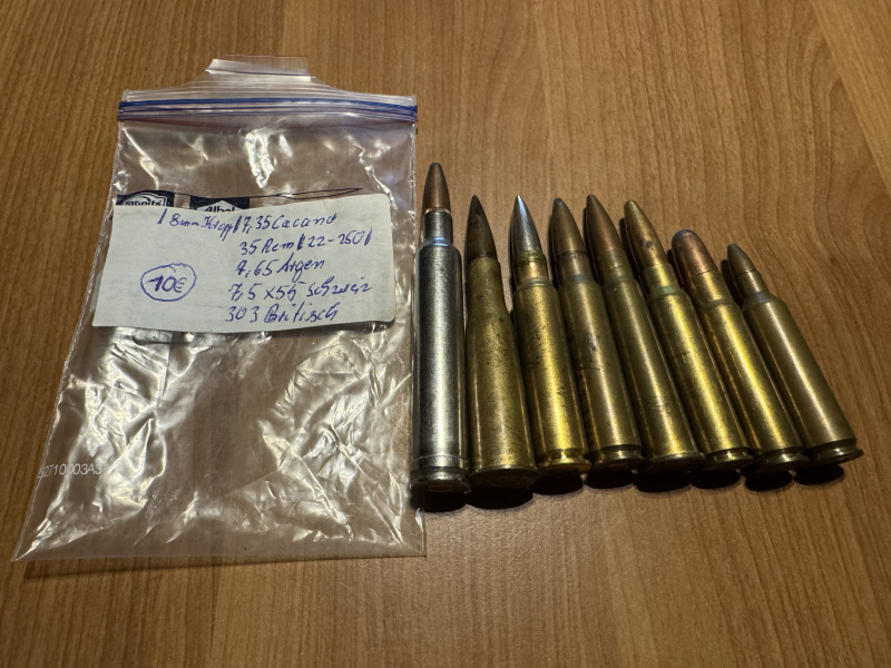 22-250 / 35 Rem / 7,35 Cacano / 8mm Kropp / 300 Weatherby Magnum / 7,65 Argen / 7,5x55 Schweiz / 303 British