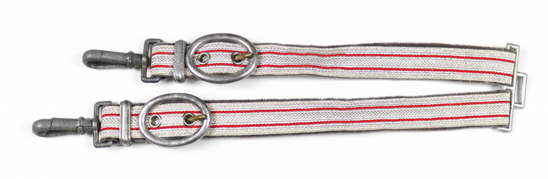 Angeboten wird ein DRK Dolch-Gehänge bestehend aus zwei Riemen mit silber/rot gewebten Bändern, Beschlägen und Karabinerhaken aus Aluminium und Zink. Rückseite mit grauem Filz/Velours. Ideal als Ergänzung für DRK-Dolch. Guter Zustand. Bitte Fotos als Bestandteil der Beschreibung beachten.