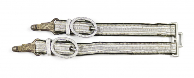 Die Karabinerhaken sind mit A markiert (Assmann). Insgesamt ein Top Gehänge, ideal zur hochwertigen Ergänzung eines Heeresdolches.